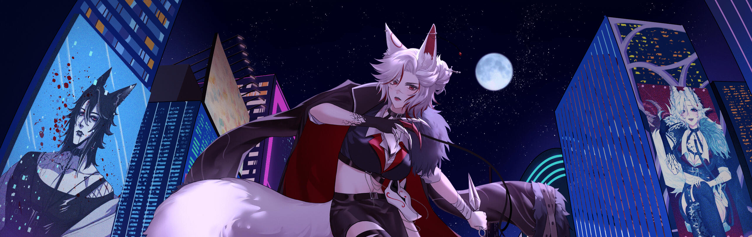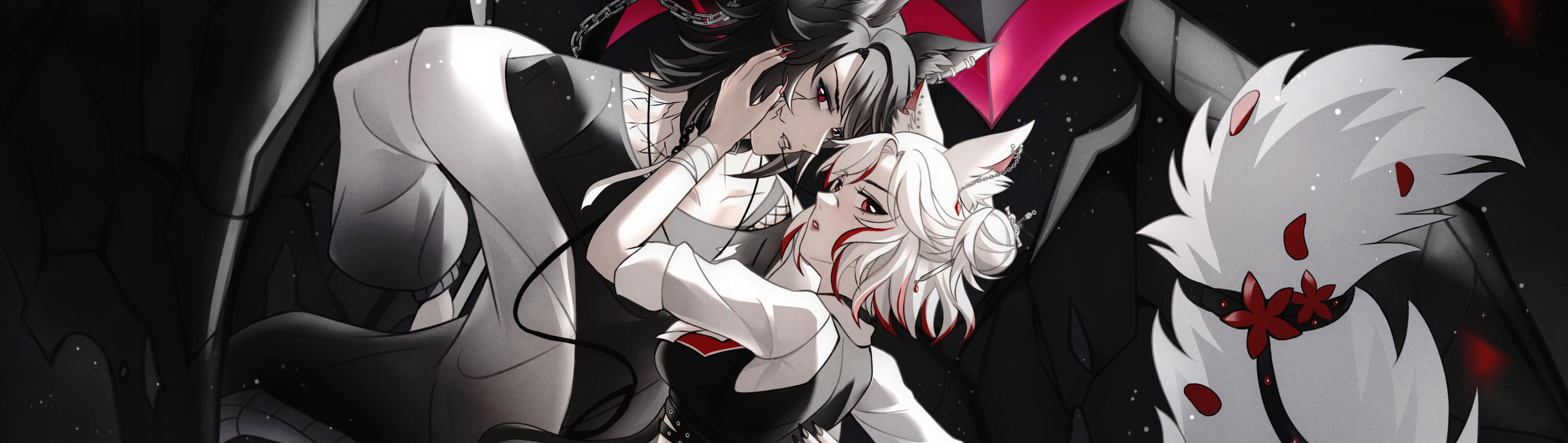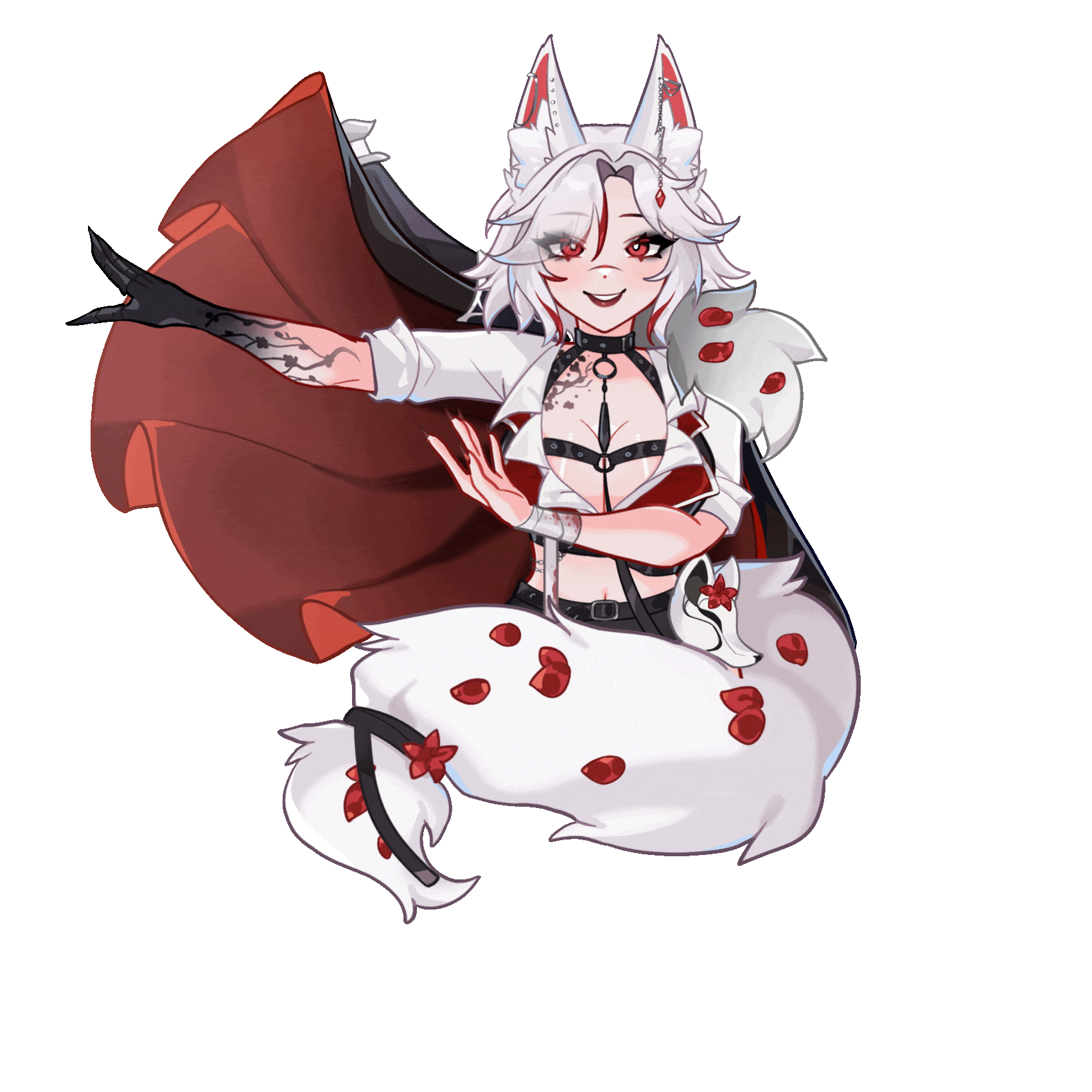 “I was so scared… everything hurt so much… Death felt so real and I thought I was going to lose you forever. Thank you, thank you. I love you so so much.” I say as I kiss him. We pull away to find the puncture wound still in my chest, but my skin and muscles beginning to regenerate. Nyght looks at me with tears in his eyes and a subtle smirk, “How’s it feel to be immortal..?”Through an intense recovery process and getting adjusted to the burning venom in my veins and an insatiable thirst, I became what I am today. A half Kitsune, half Vampire Assassin with a renewed vigor and unsatiated bloodlust for revenge. Nyght and I’s bond grew stronger than ever and we are now the unstoppable forces that keep our Lunatics safe.
